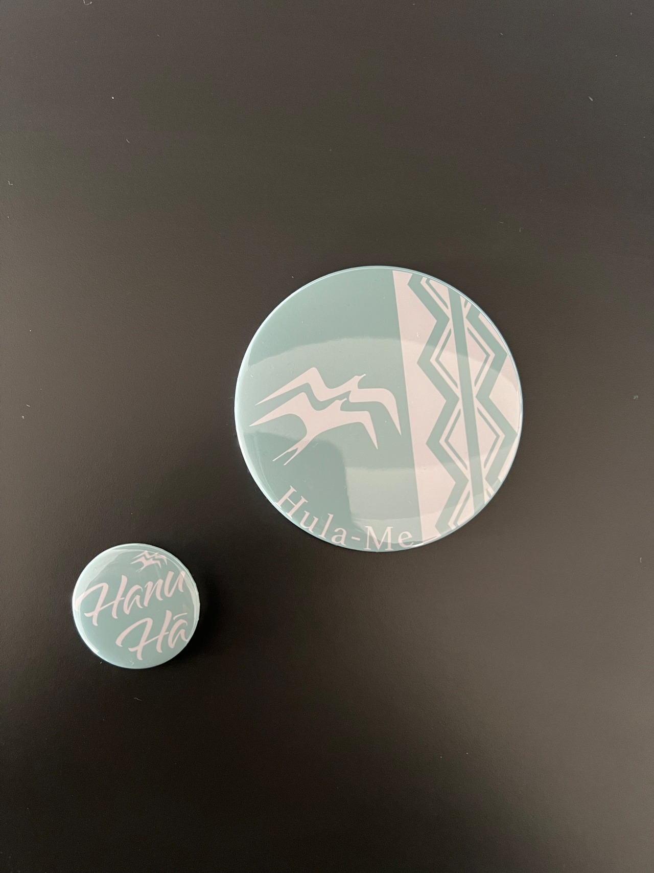 こちらには可愛いHanu HāバッジとHula-Meミラーが付いてきます!*写真参照